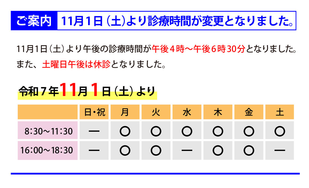 - 2025年9月9日 9月19日(金)午後臨時休診のお知らせ